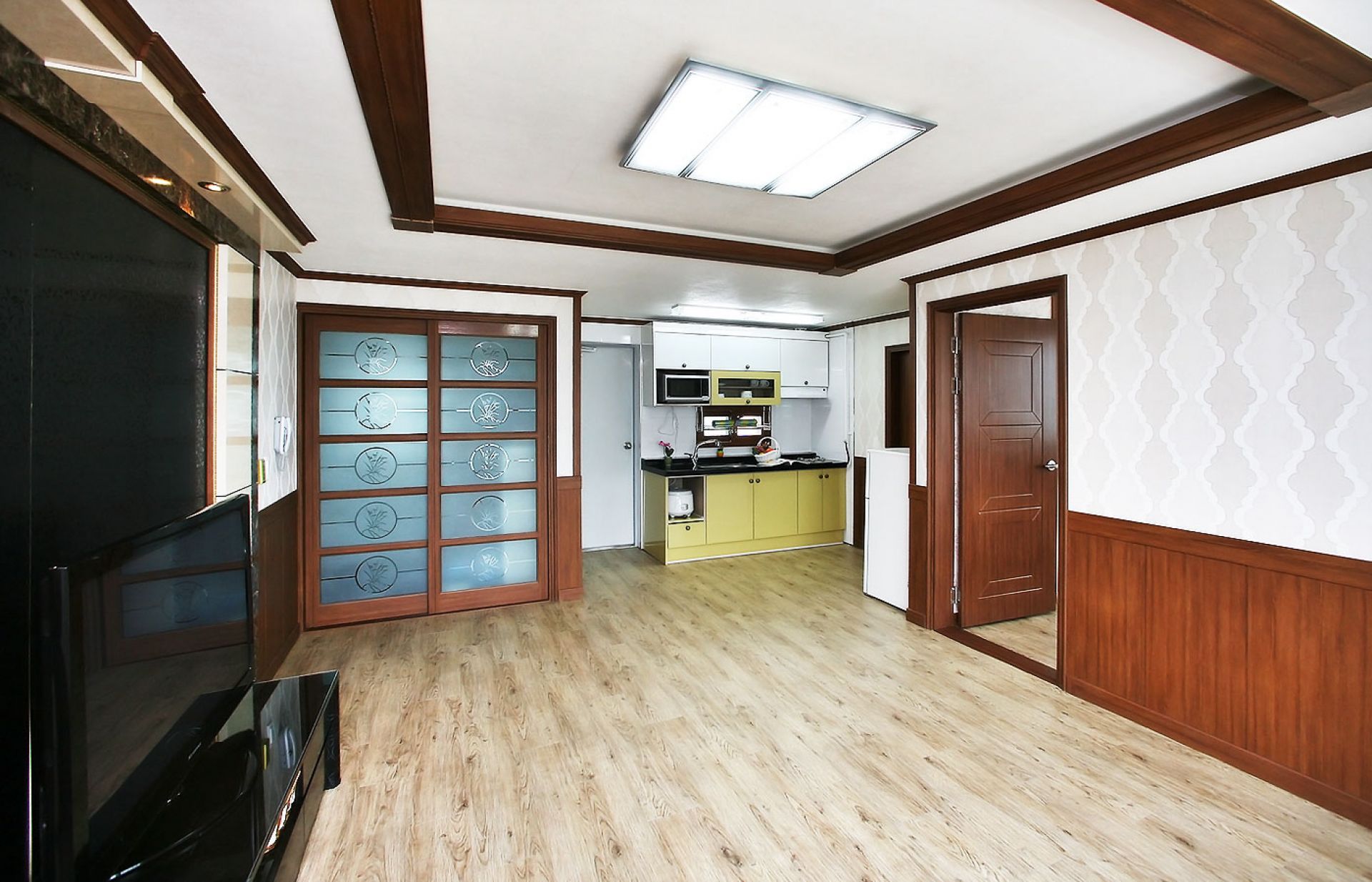 • 시설 : TV, 침대,쇼파, 식탁, 에어컨, 냉장고, 선풍기, 가스렌지, 드라이기, 취사, 밥솥, 전자렌지, 욕실용품
